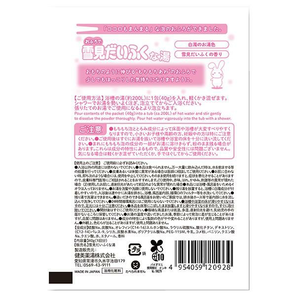 他の画像を見る 健美薬湯 雪見だいふくな湯 40g 入浴剤 もちもち泡 バブルバス 甘い香り 白濁湯 コメ粉保湿 ミルク成分 お風呂 1回分 正規品 メール便1通2個まで可 ギフト可 メール便 日付指定可 セール価格 ¥ 275 税込 カートに入れる お気に入りに登録する