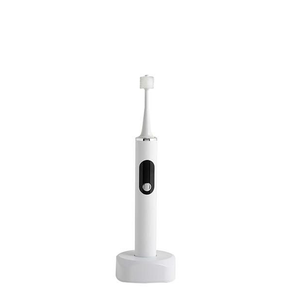丸いヘッドの360度ブラシが効率よく汚れを落とす「エイミー 電動歯ブラシ」。