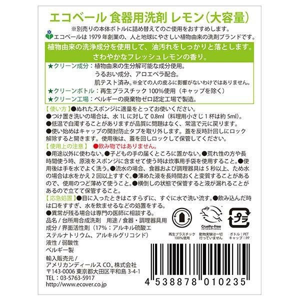 6. エコベール 食器用洗剤レモン大容量 5000ml 2個セット 油汚れ さわやかい クリーン成分 うるおい成分 正規品 ギフト可