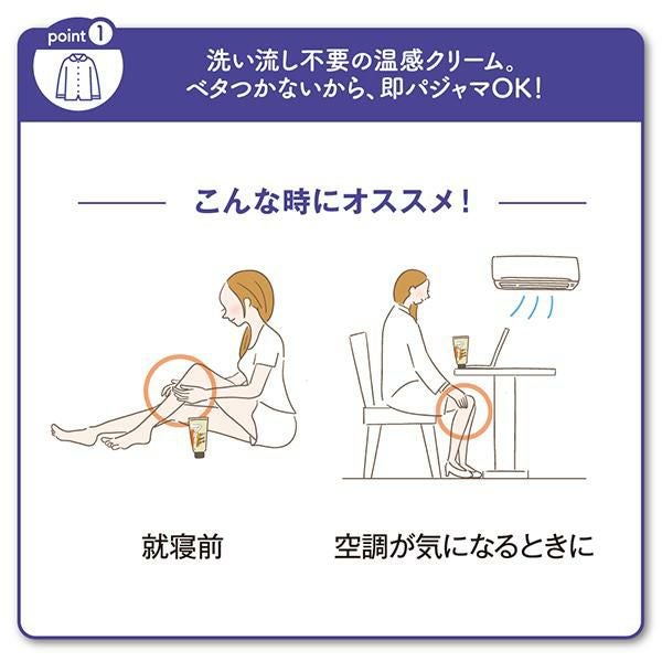 寝る前にじんわり温感&うるおいで包み込む、スチーム蒸留抽出したよもぎ※配合のボディクリーム。足先に塗ってもベタつかず心地よいお手入れ時間へ誘う。※ヨモギ葉水(保湿成分)