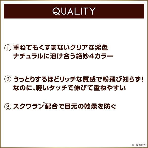2.うっとりするほどリッチな質感で粉飛び知らず!なのに、軽いタッチで伸びて重ねやすい