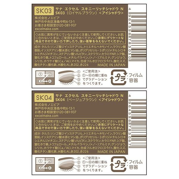 エクセル スキニーリッチシャドウ N 4色パレット ツヤ感 立体感 密着力 長時間持続 長時間キープ 粉飛びせず 保湿成分 excel 正規品 メール便1通3個まで可 ギフト可