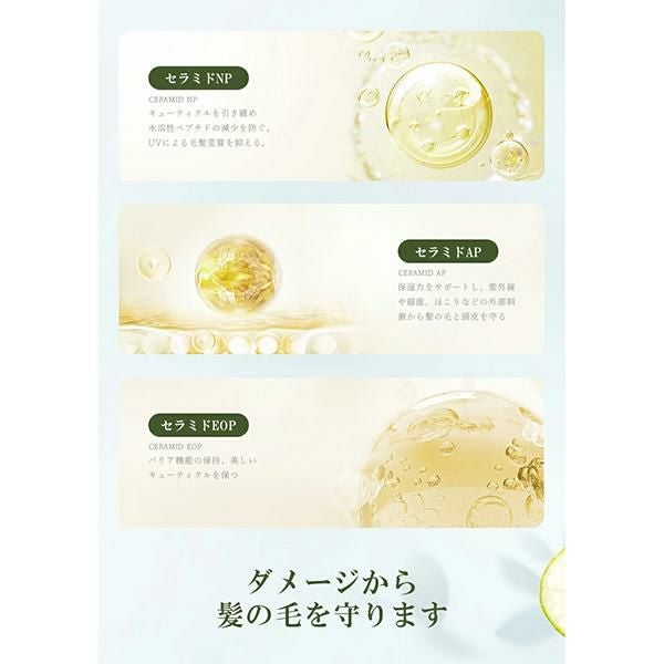 セラミド成分がしっとりとまとまる髪へ導きます。
