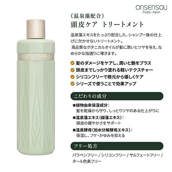 温泉藻エキスと温泉酵母エキスを配合した頭皮ケア用トリートメントです。