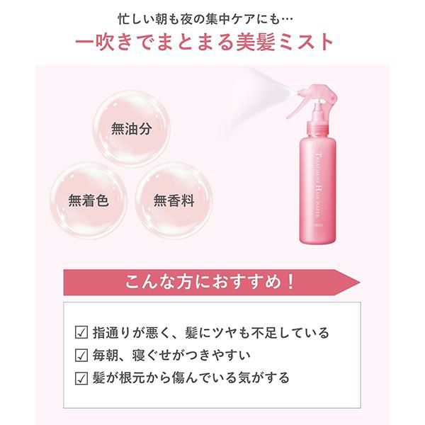 ひと吹きでまとまるサラツヤ髪へ整えるヘアウォーター。