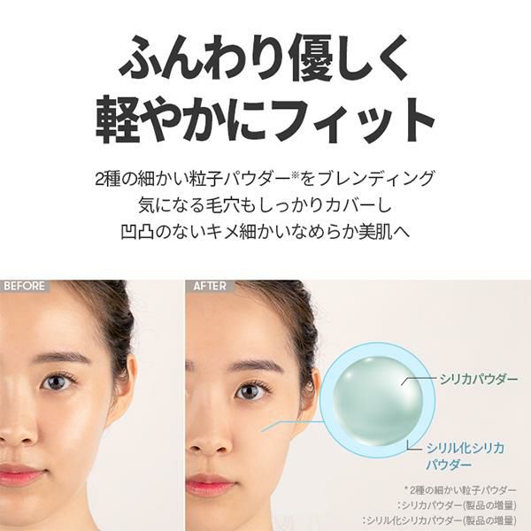 微細なパウダーが均等に密着。VTのシカ成分でメイク汚れを防いで華やかさらさら肌に。