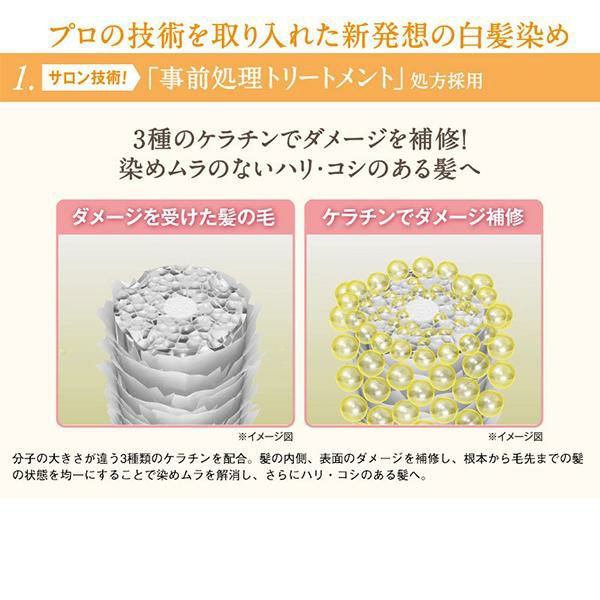1回3分で白髪がサロン染めのように綺麗にムラ無く染まる。事前処理成分を配合