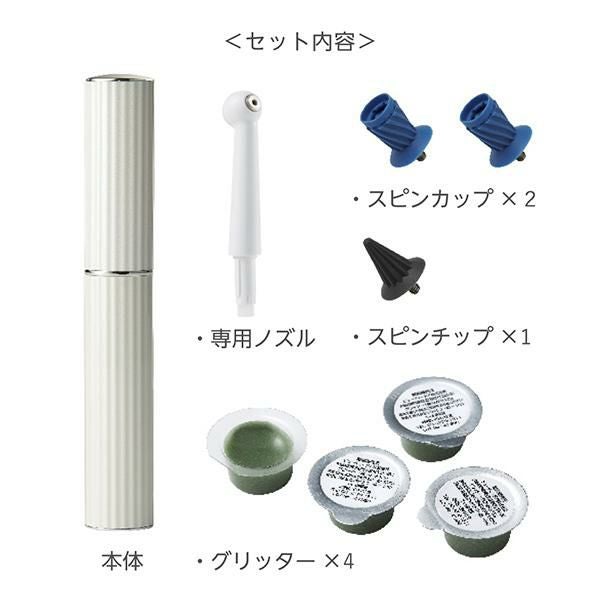 ■セット内容/本体(ノズル付)、スピンカップ×2、スピンチップ×1、グリッター×4、グリップ×1、取扱説明書(保証書付)