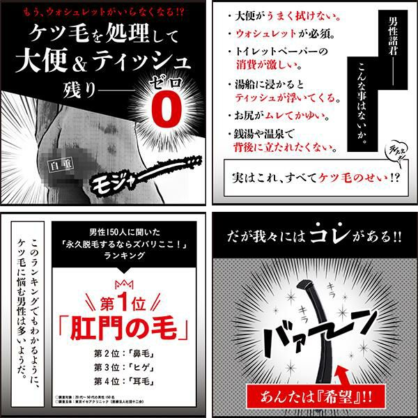 男性の脱毛したいランキング1位である「肛門の毛(ケツ毛)」を安全簡単に処理できるのがこの商品!