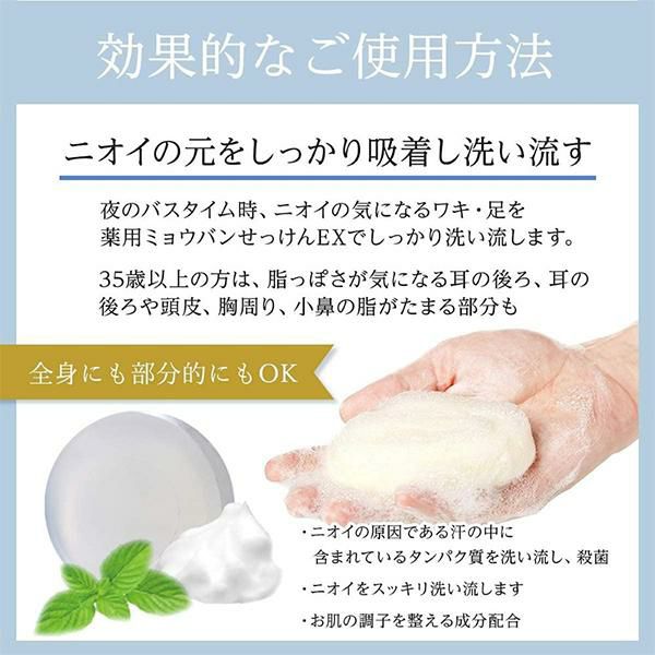 ミョウバン・ペパーミント・殺菌成分配合ニオイの原因菌をすっきり洗い上げる薬用せっけん。