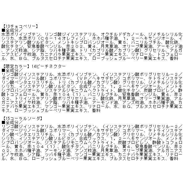 【07プラムジャム、11ハニーレモン、12チェリーエード、13チョコベリー、【限定カラー】14ピーチネクター、15コーラルソーダ、【限定カラー】16アップルマンゴー、17ベリーミルク、18コージーピンク】