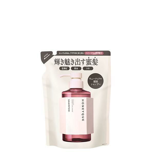 ふっくらぷるんと輝く蜜髪へと導く「ハニーコラーゲン処方」のシャンプー。髪内部の水分量を保持するオーガニックマヌカハニー※1や、髪の空洞化※2をケアする3種のコラーゲン※3など、髪本来の輝きを魅き出す美髪成分を厳選して配合。濃密な泡立ちで洗髪中の摩擦ダメージを抑え、頭皮の汚れをスッキリ落とします。アクアブロッサムハニーの香り。