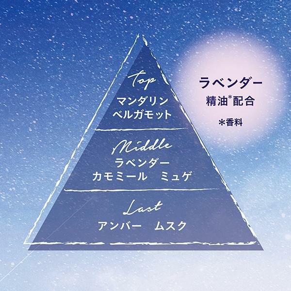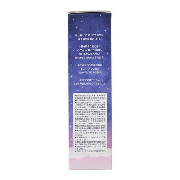 帰り道、ふと星空を見上げると一日を終えた安心感、明日への前向きな気持ちが同時にあふれ出す。 星空が持つそんな不思議な力にインスパイアされたフレグランスです。 日常使いはもちろん、おやすみ前のリラックスタイム等、ゆっくりくつろぎたいときの使用もおすすめです。 ラベンダー精油※配合。 ※香料