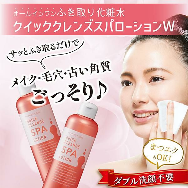 フューチャーラボ クイッククレンズスパローション W 野バラ ジューシーシトラス 化粧水 スキンケア 拭き取り ふき取り 多機能型クレンジング 大容量 温泉水 正規品 ギフト可