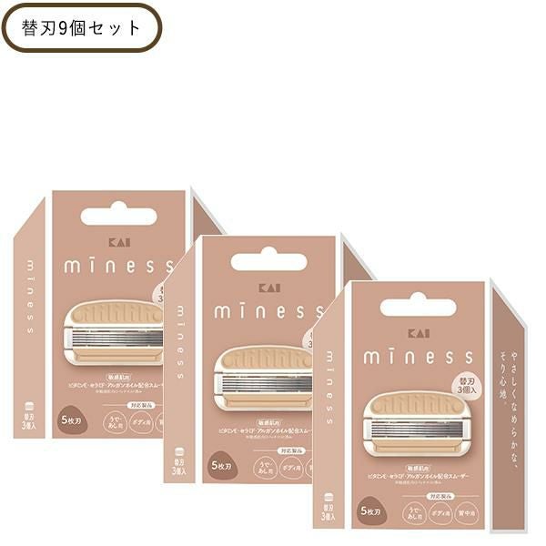 miness 替刃9個セット ボディ用、背中用、うで・あし用共通 マイネス 貝印 カミソリ 女性 剃刀 ロングシェーバー ムダ毛 処理 脱毛 除毛 セルフケア 正規品 ギフト可 母の日