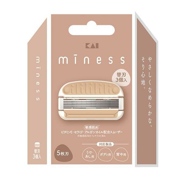 6. miness 替刃9個セット ボディ用、背中用、うで・あし用共通 マイネス 貝印 カミソリ 女性 剃刀 ロングシェーバー ムダ毛 処理 脱毛 除毛 セルフケア 正規品 ギフト可 母の日