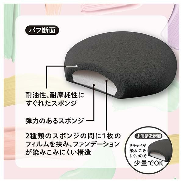 多層構造のパフでファンデーションが染こみくく、リキッドが少量でOK。