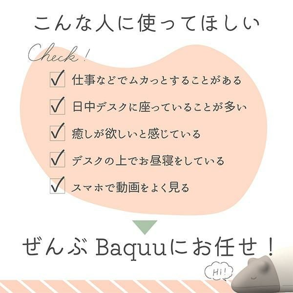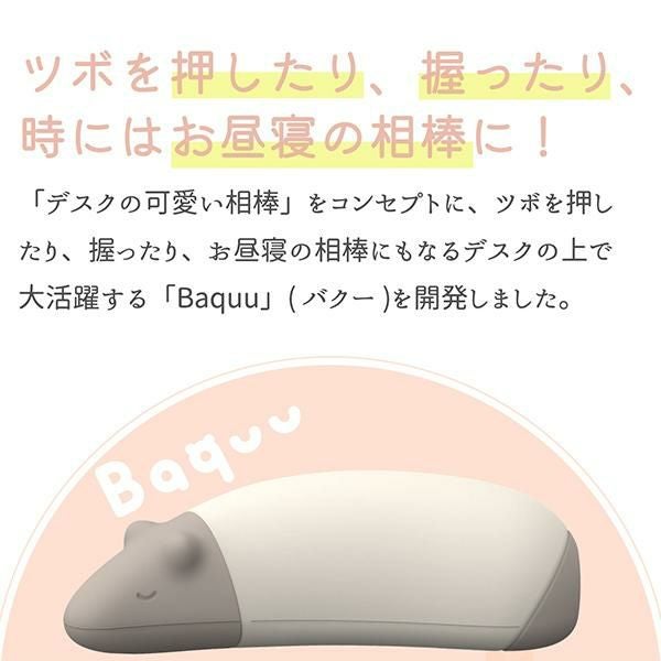 老舗寝具メーカーが3年かけて開発したお昼寝用。 バクの形をしたバクーがあなたの悪い夢を食べちゃいます♪ お昼寝・マッサージ・スマホスタンドなどデスクワークの味方に!