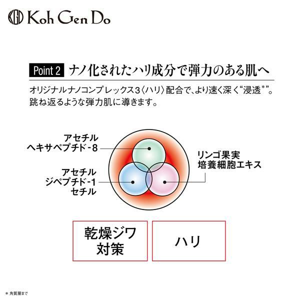 高粘性の濃厚ミルクが滑るように伸び、角質層のすみずみまで深くうるおいを与えながらハリ、艶、滑らかさを与え、キメをしなやかに整え、跳ね返るような弾力肌に導きます。