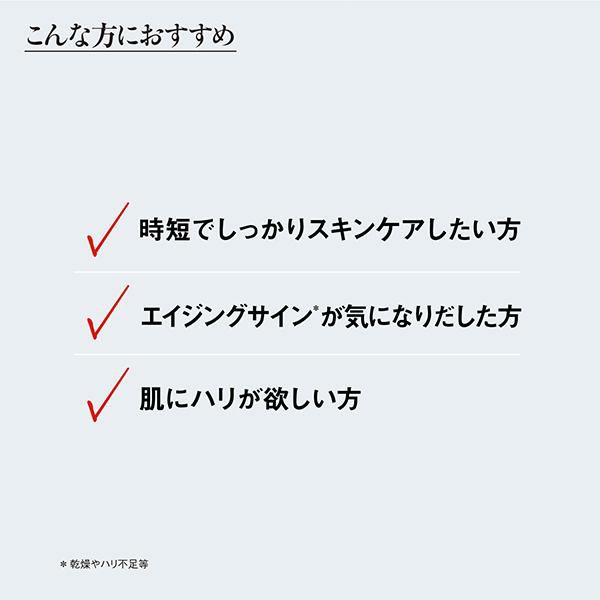 うるおいを補う5種のセラミドや、しぼみがちな大人肌をハリ感のある肌へ導くハリ艶サポート成分を贅沢に配合。