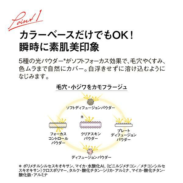 極薄の透過フィルターであらゆる肌ノイズを補整(*)し、美しい素肌をデザインする化粧下地。
