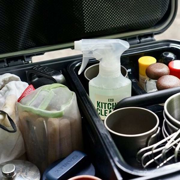●アウトドアでも活躍!キャンプなどで使用した食器や道具も、汚れにスプレーしてふき取るだけで、後片付けが完了。