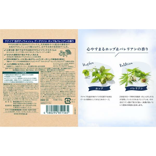 クナイプ 泡ボディウォッシュ 450g 濃密泡 やすまる香り 花々の香り 天然植物オイル 夜美容タイム リラックス 正規品 ギフト可