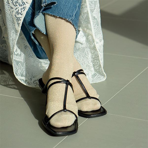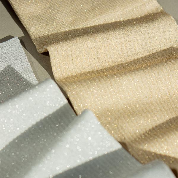 「極柔」と呼ばれるとてもソフトなラメ糸を使用することで、ラメ特有のチクチク感を抑え、なめらかな肌あたりと快適な履き心地を両立。リブの細さにこだわって設計した編み地は、ラメのきらめきが上品に際立ち、シャープで洗練された表情に。脚をすっきり美しく見せてくれるのも魅力です。日常のケアに適した段階着圧設計で、軽やかな脚もとに。