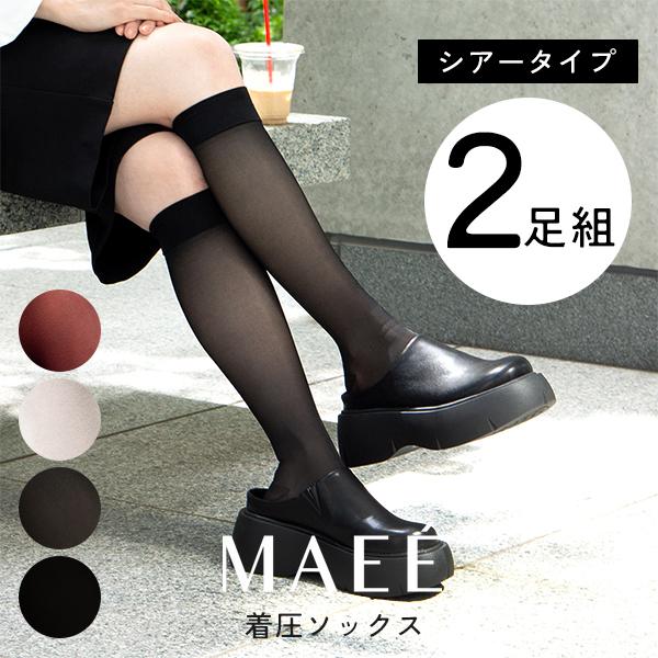 MAEE コンプレッションソックス シアータイプ 2枚セット 着圧ソックス ハイソックス むくみ 予防 正規品 メール便1通1個まで可 ギフト可