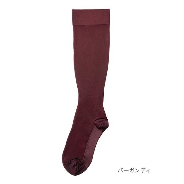 【一般医療機器届出済】足首最大32hPaの一般医療機器の設計により、気になる脚のむくみを予防・軽減。脚もとに軽やかな抜け感を演出する、ナイロン製のシアー着圧ソックスです。