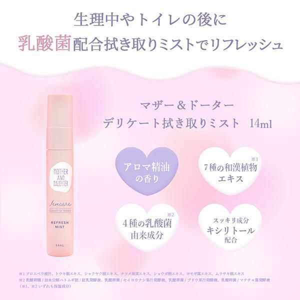 他の画像を見る マザーアンドドーター フェムケア デリケート拭き取りミスト 14ml 生理中 植物エキス 乳酸菌 敏感肌 正規品 ギフト可 日付指定可 セール価格 ¥ 1,375 税込 詳細を見る お気に入りに登録する 在庫切れ