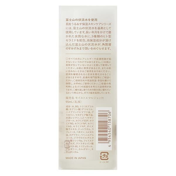 角質層の水分を守り、潤いを保つ乳液。なじみのよい質感で、水分と油分をバランスよく補い、キメの整ったやわらかな肌に導きます。