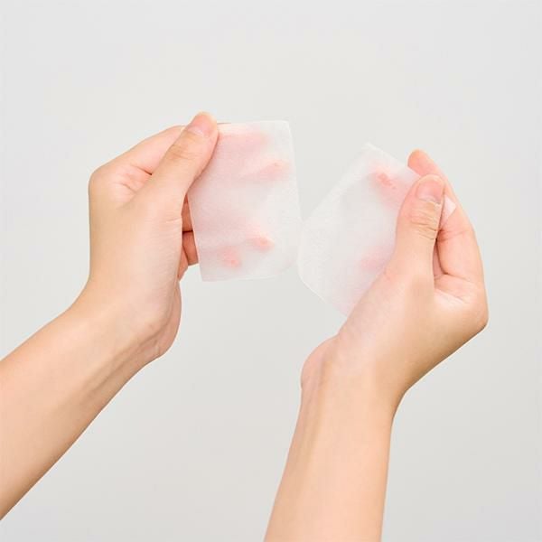 ※お顔の部位に合わせてマスクの大きさを調整してご使用ください。頬や額にはそのままの大きさで、鼻や顎など狭い部位には半分にちぎって使うのがおすすめです。
