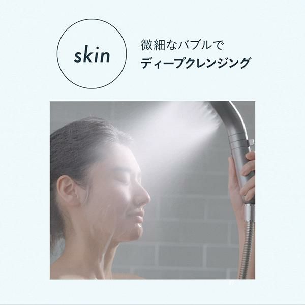 塩素除去されたオーガニックファインバブル・約76億個で、肌の潤いを保ったまま毛穴の奥の汚れと匂いをスッキリ洗浄。