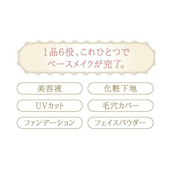 3つの効果(ファンデーション効果・スキンケア効果・カラーコントロール効果)で瞬時に美肌再生する、1品6役の多機能CCパウダーです。