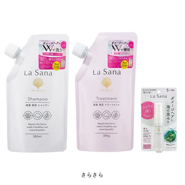 こちらは ラサーナ 海藻海泥【シャンプー つめかえ】&【トリートメント つめかえ】&【ヘアエッセンス S】のセット販売ページです。