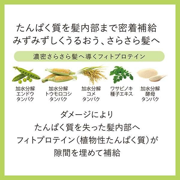 優しさと強さを持つ、植物(フィト)の力が十分に活かされた「植物性たんぱく質」が補給され、しっとりさらさら髪へ。