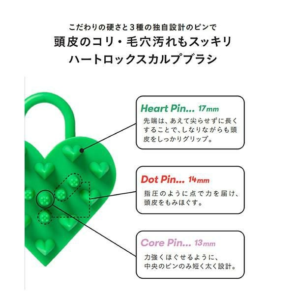 6. シンピュルテ ハートロック スカルプブラシ 頭皮ケア 2Way仕様 ドライヘッドスパ シャンプーブラシ 長さの違う3種のピン 頭皮にフィット SINN PURETE 正規品 ギフト可