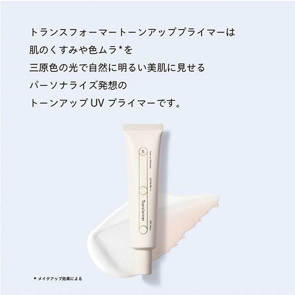 肌のくすみや色ムラ※1を、三原色の光で自然に明るいツヤ肌に見せるパーソナライズ発想のトーンアップUVプライマー、誕生。美容液のようにしっとりなじみ、小顔効果※1を演出。これ一本でも、ファンデーションの前の下地としても。明るいツヤ肌へとトランスフォーム(変化)していきます。"