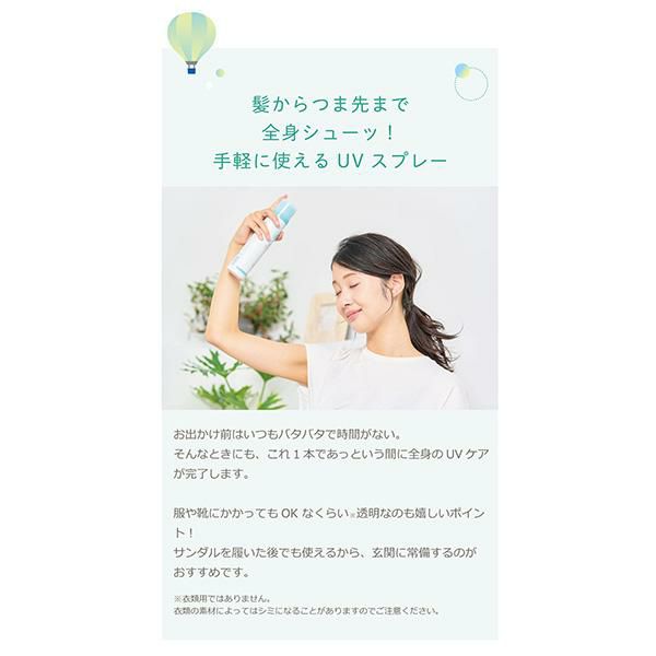他の画像を見る 紫外線予報 透明 UVスプレーF 日焼け止め 子ども 顔 ボディケア 髪用 石澤研究所 正規品 ギフト対応可 10%OFF セール価格 ¥ 2,255 税込 カートに入れる お気に入りに登録する