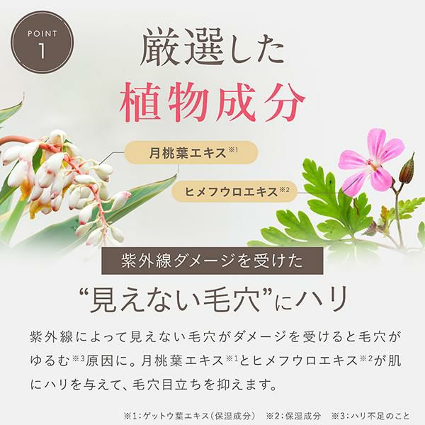 美容液がマスクのように素肌をうるおいで包みこみ、毛穴の目立たない、なめらかな肌に導きます。