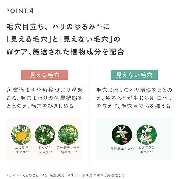 「密着リフト処方」でゆるんだ肌印象をグッとひきしめて、毛穴の目立たない、ハリに満ちた肌に導きます。