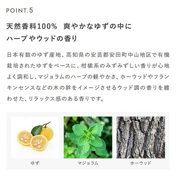 水、グリセリン、プロパンジオール、リンゴ酸ジイソステアリル、スクワラン、水添ヤシ油、パルミチン酸エチルヘキシル、ベタイン、スクロース、水添レシチン、メドウフォーム種子油、ペンチレングリコール、ジメチコン、セテアリルアルコール、水添パーム核油、ユズ果皮エキス、アーチチョーク葉エキス、ドクダミエキス、ノイバラ果実エキス、ヒメフウロエキス、ゲットウ葉エキス、水添パーム油、シリカ、(ジメチコン/ビニルジメチコン)クロスポリマー、(アクリレーツ/アクリル酸アルキル(C10-30))クロスポリマー、カルボマー、キサンタンガム、ポリクオタニウム-61、コメ胚芽油、ユズ果実エキス、PCA-Na、ラウロイルグルタミン酸ジ(フィトステリル/オクチルドデシル)、ユキノシタエキス、シャクヤク花エキス、シラカンバ樹液、ウメ果実エキス、温泉水、エチルヘキシルグリセリン、ジグリセリン、ジフェニルシロキシフェニルトリメチコン、BG、(アクリル酸ヒドロキシエチル/アクリロイルジメチルタウリンNa)コポリマー、ステアロイルグルタミン酸Na、アラキジルグルコシド、ポリソルベート60、セテアリルグルコシド、アラキジルアルコール、バチルアルコール、ベヘニルアルコール、水酸化Na、トコフェロール、EDTA-2Na、フェノキシエタノール、香料