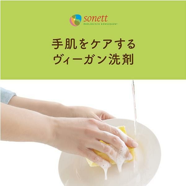 界面活性剤(15.8%、アルキルグルコシド、アルキル硫酸エステルナトリウム)、保存料(エタノール)、粘度調整剤(塩化ナトリウム)、pH調整剤(クエン酸ナトリウム)、香料(レモングラス*)*は有機栽培原材料(主にヨーロッパ認定機関にて)