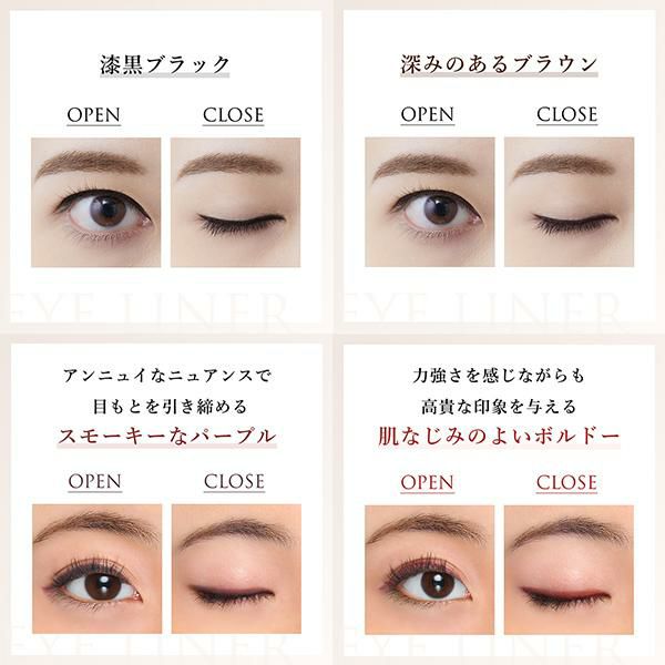 ●【落ちにくいウォータープルーフタイプ】肌にピタッと密着して水・汗・皮脂に強い、長時間美しい仕上がりをキープするにじみにくいアイライナーです。