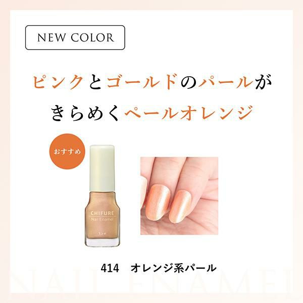 ・414オレンジ系パール きらきらの太陽から生み出される、あたたかい陽だまりを表現したカラー。ピンクとゴールドのパールがきらめくペールオレンジ。