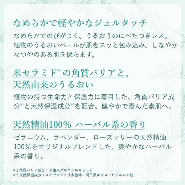 ●【米セラミド※1の角質バリアと、天然由来のうるおい】植物の持つ生命力と保湿力に着目した、角質バリア成分※1と天然保湿成分※2を配合。濃密なうるおいが肌を包み込んで守り、健やかで澄んだ素肌へ。(*1 角質バリア成分:米由来グルコシルセラミド、*2 天然保湿成分:スイゼンジノリ多糖体・明日葉エキス・ヒアルロン酸)