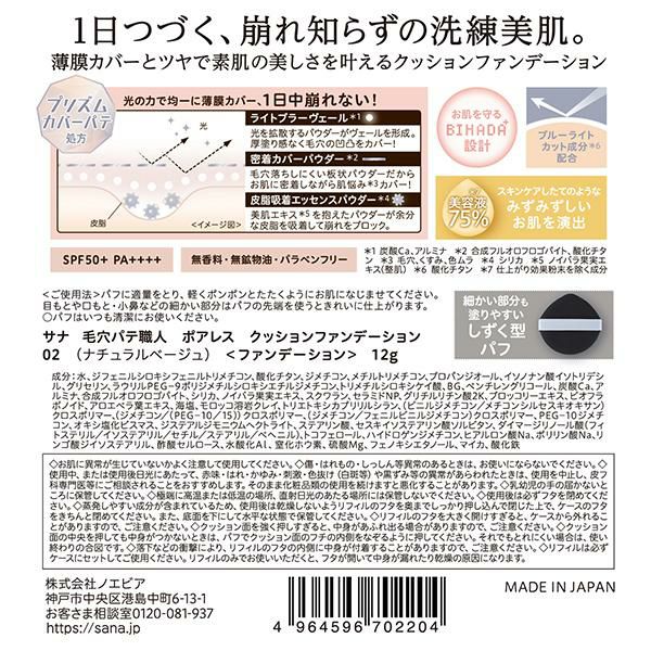 他の画像を見る 毛穴パテ職人 ポアレス クッションファンデーション 自然なツヤ 密着 薄膜 無香料 無鉱物油 正規品 ギフト可 日付指定可 セール価格 ¥ 2,145 税込 カートに入れる お気に入りに登録する 在庫切れ