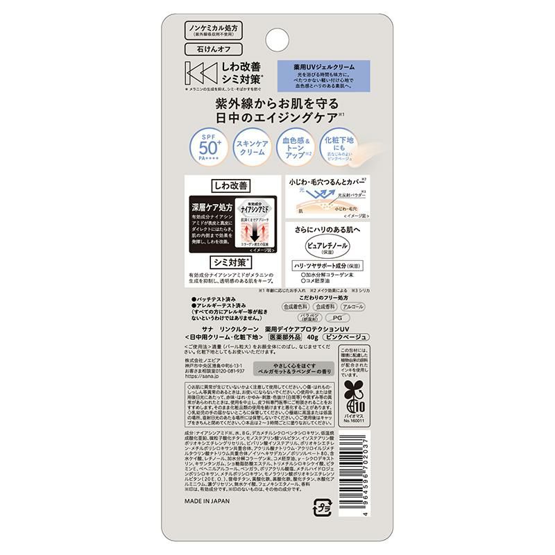 他の画像を見る リンクルターン 薬用デイケアプロテクションUV 薬用UV しわ改善 シミ対策 化粧下地 正規品 メール便1通3個まで可 ギフト可 メール便 日付指定可 10%OFF セール価格 ¥ 1,760 税込 詳細を見る お気に入りに登録する 在庫切れ