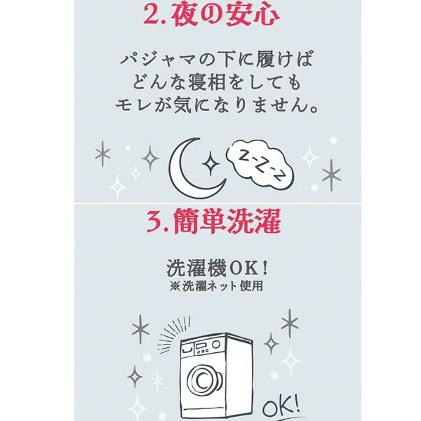 ●夜はパジャマの下に履けば、どんな寝相をしてもモレが気にならず、寝具を汚さず安心!